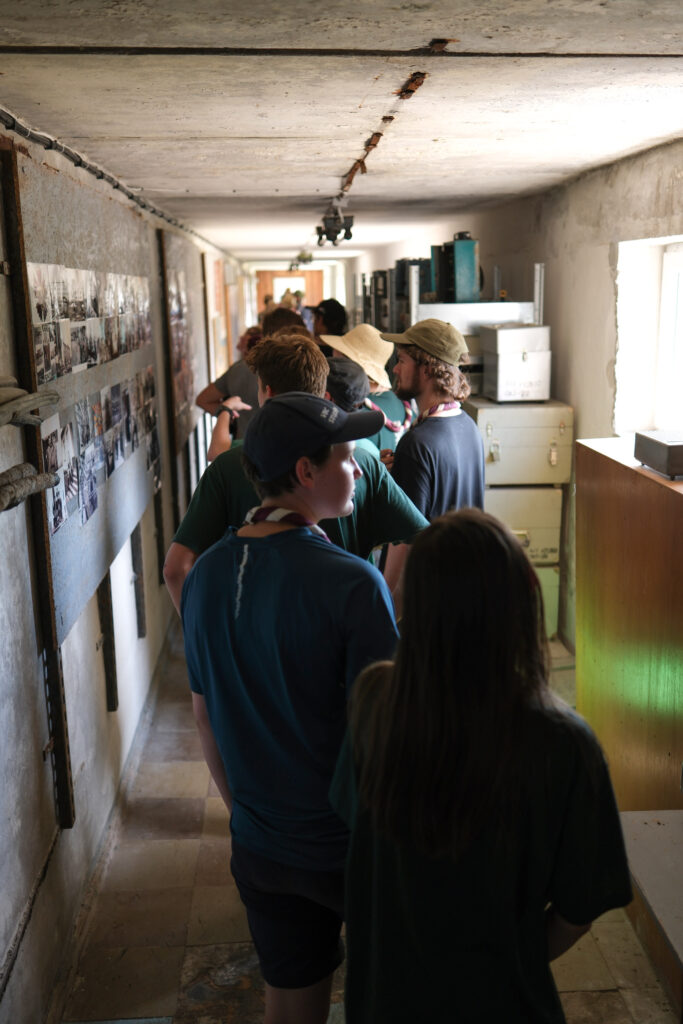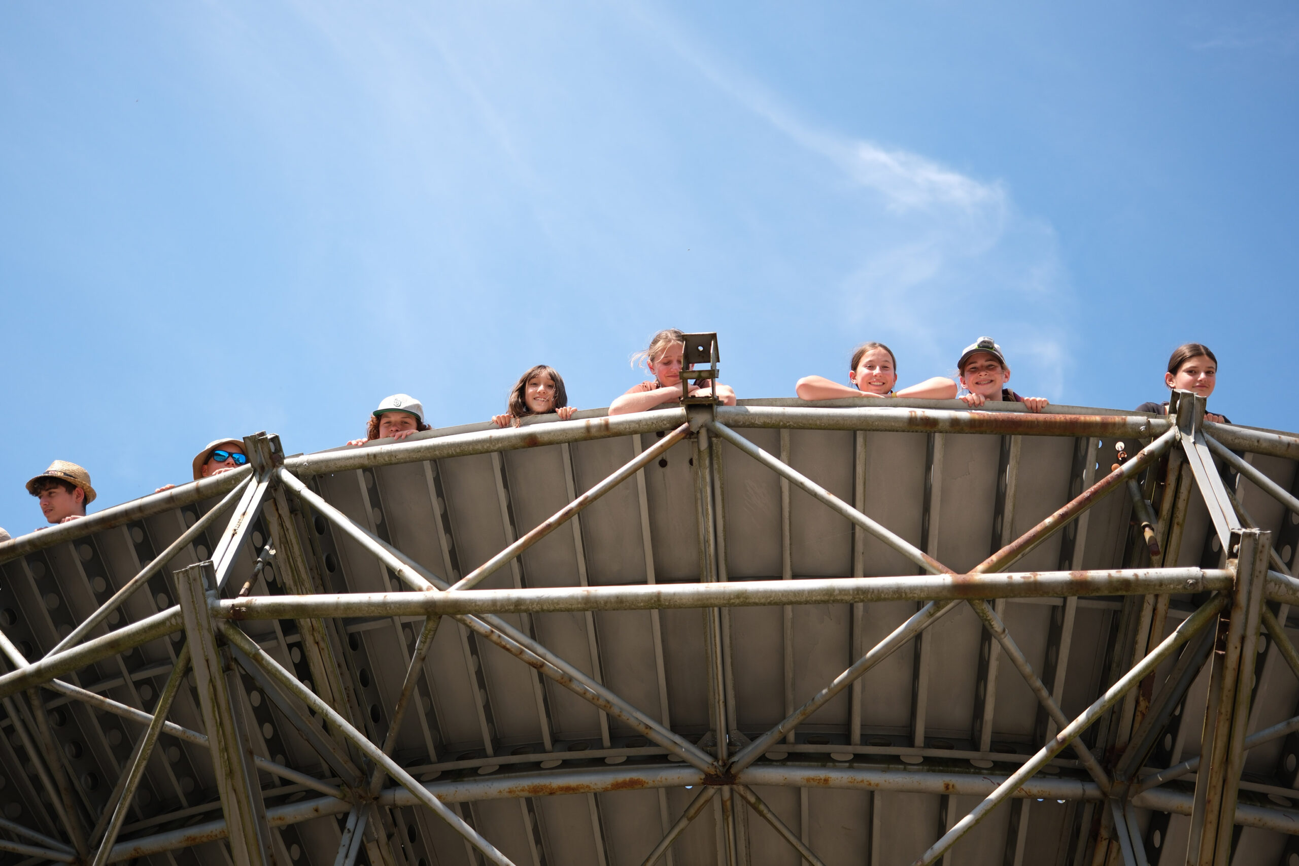 Am Morgen wurden wir geweckt mit epischer Musik. Wir mussten uns anziehen, und zwar mit Sportkleider und Sportschuhen und Regensachen und das alles in 5 Minuten. Nach den 5 Minuten trafen wir uns vor den Zelten und das Morgenfit ging los. Zum Morgenfit gingen wir auf das Feld und wollten gerade anfangen mit einem Blinzelspiel, bis aber die Besitzerin vom Feld kam und uns wegschickte. Die Frau sah ziemlich arrogant und nervig aus. Weil wir nicht aufs Feld durften, gingen wir in Fägers Garten, dort wo wir auch unsere Zelte haben, und machten dort das Morgenfit. Danach gingen wir zu den Küchen und assen Porridge. Nach dem Essen ging es schnell wieder weiter. Wir mussten den kleinen Rucksack mit Wasserflaschen, Sonnenschutz und Regenjacke packen und dann besammelten wir uns vor den Zelten, um loszulaufen. Wir sind etwa 3 Stunden gelaufen. Es war cool, auch wenn es nicht das Beste vom Tag war. Nach etwa 3 Stunden sind wir endlich in einer toten Stadt angekommen. Dort besuchten wir die Häuser, die fast zusammenbrachen. Wir fanden viele alte Zeitungen, Müll und noch vieles mehr. Es war mega cool und spannend. Wir assen zum Mittagessen Brot, Käse und Gemüse. Wir gingen nach dem Essen weiter in eine Art Museum. Dort waren alte Radioteleskope zu sehen und wir sind auch in eines reingegangen. Dort gab es auch eine Frau, die uns ein paar spannende Sachen erzählte. Leider erzählte sie das auf Englisch, aber spannend war es trotzdem.